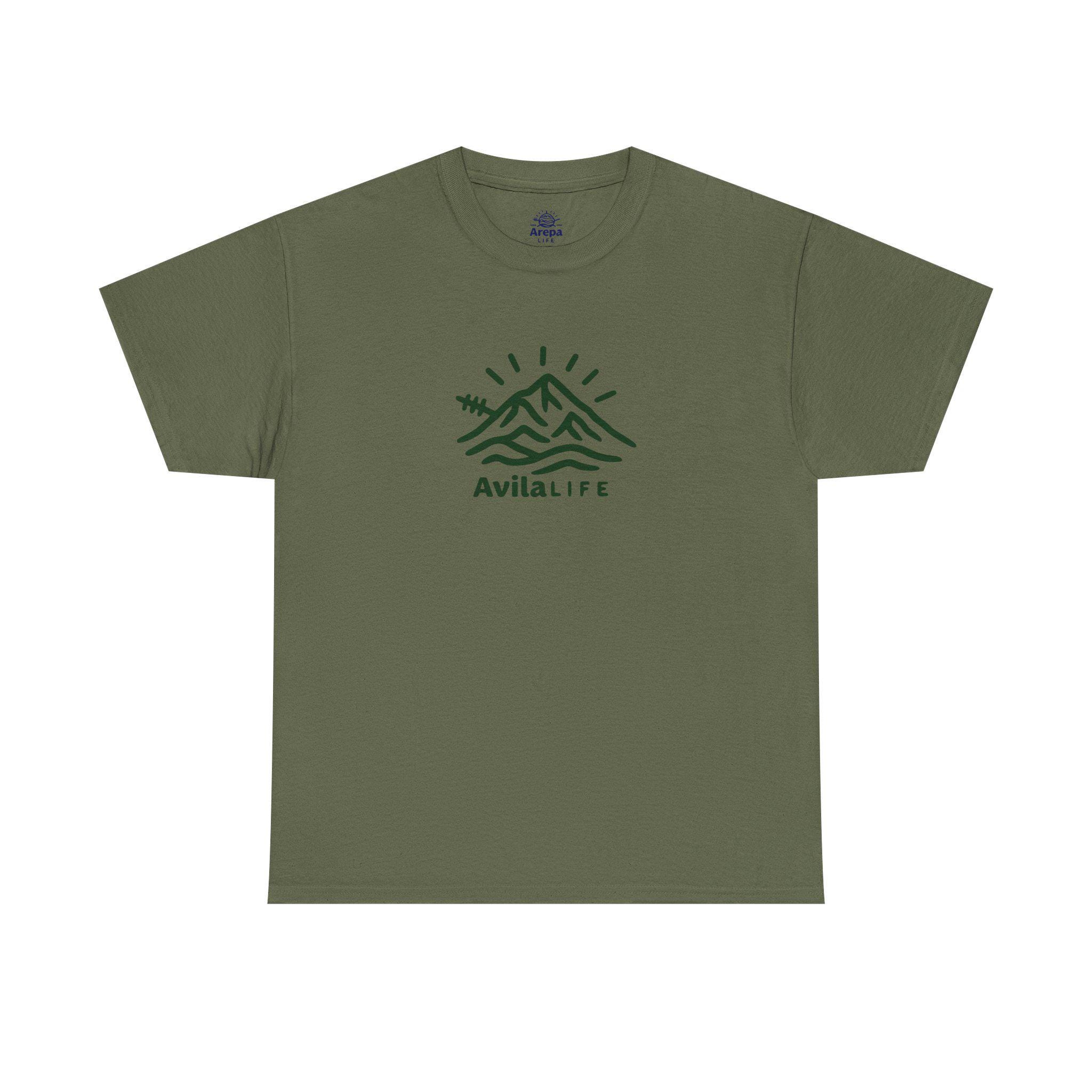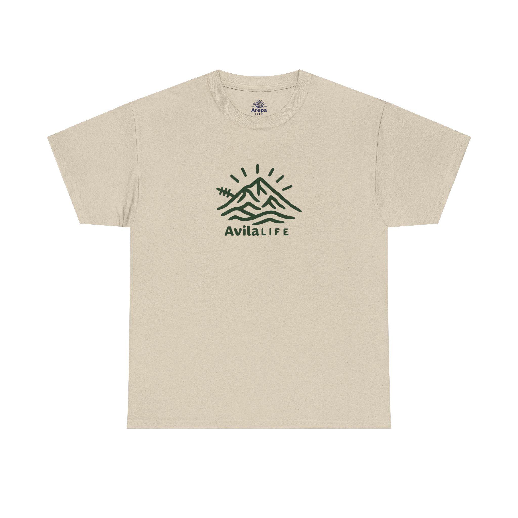 This soft, natural-colored tee carries a calm, outdoorsy vibe—simple green line art of mountains, a tiny airplane, and flowing waves sits at the chest with a small “Arepa Life” mark beneath. It feels like a quiet morning at basecamp: cool air, sunbreaks over ridgelines, and plans for a slow, intentional day. The medium-weight cotton holds shape and print detail while still feeling lived-in; The tubular knit and ribbed collar keep the silhouette clean and minimal. Wear it on weekend drives, low-key hikes, or when you want to bring a bit of mountain air into city life.